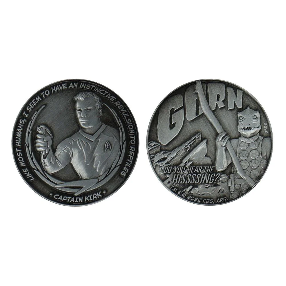 Schicke Star Trek Sammelmünze mit Anspielung auf die TOS-Folge 19, Staffel 1 (Ganz_neue_Dimensionen), in welcher der legendäre Kampf zwischen Captain Kirk und einem Gorn stattfand.